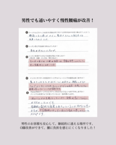 産後ピラティスで反り腰からくる腰痛が改善されて、腹部もスッキリしました!
