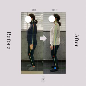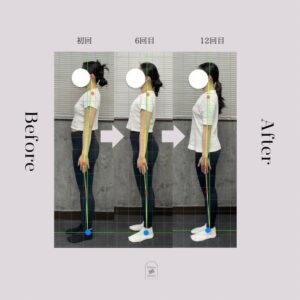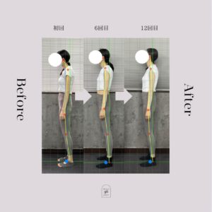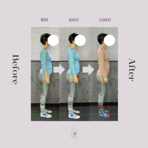 前に出ていた頭の位置が整い、膝の屈曲も改善されて、背筋がシャキッと整いました♩